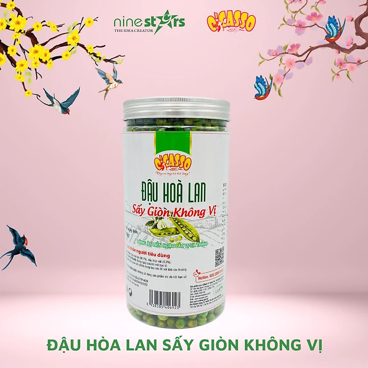 Đậu Hà Lan Sấy Giòn Không Vị O'Casso. Ăn liền hoặc lắc vị ưa thích hộp 500g