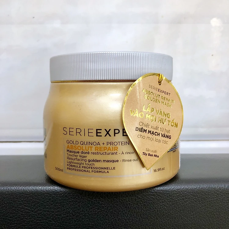 HẤP DẦU NHŨ VÀNG PHỤC HỒI TÓC HƯ TỔN L'ORÉAL SERIE EXPERT GOLD QUINOA + PROTEIN ABSOLUT REPAIR GOLDEN MASQUE 500ML