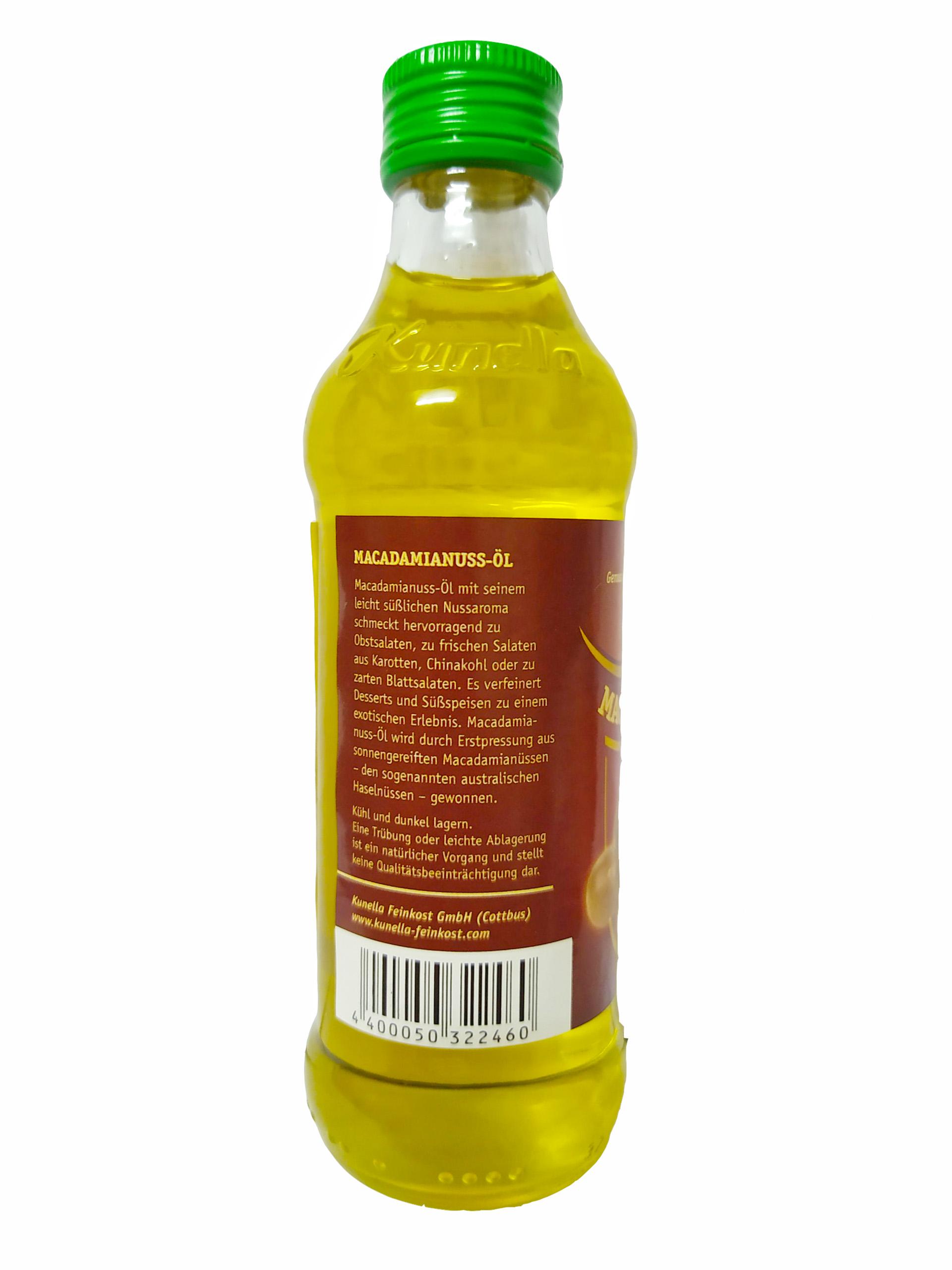 Dầu Macca có thể được dùng trong nhiều cách chế biến thực phẩm bao gồm các món chiên rán, món nướng, các loại salad hoặc dùng thay bơ cho các món sandwich buổi sáng.