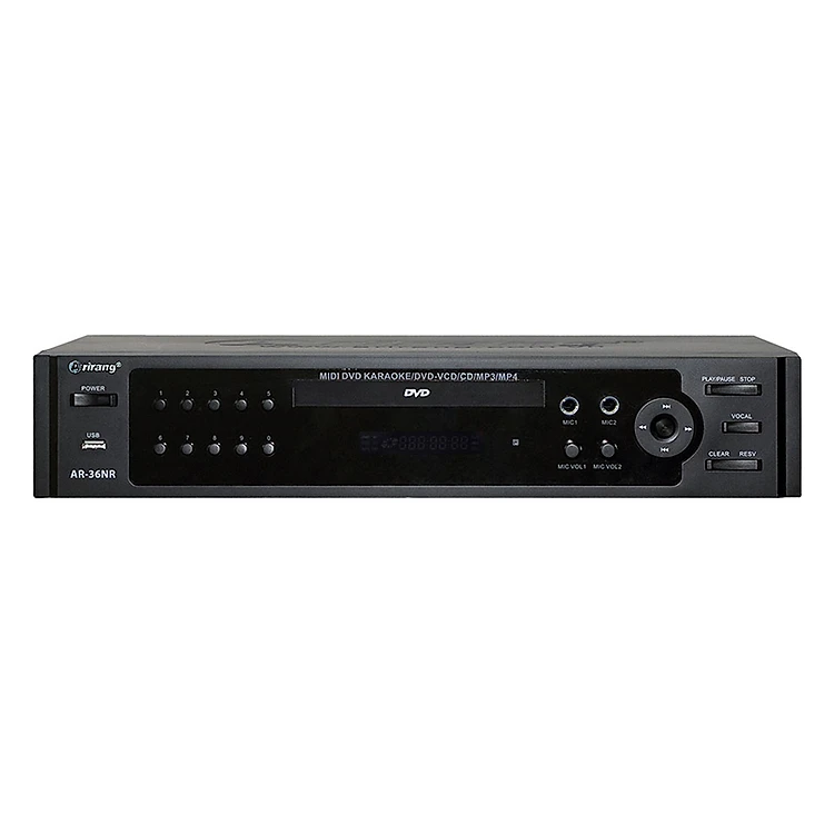 Đầu máy DVD Arirang AR-36NR có khay đọc đĩa hỗ trợ các định dạng DVD, VDC, CD. Ngoài ra kết nối USB nhanh chóng, tiện lợi. Bên cạnh đó, Arirang AR-36NR còn có thể hỗ trợ gắn thêm 1 ổ cứng ngoài thông qua cổng giao tiếp USB, đem đến khả năng lưu trữ không giới hạn mọi bài hát Midi Karaoke, chương trình ca nhạc và các bộ phim ưa thích.
