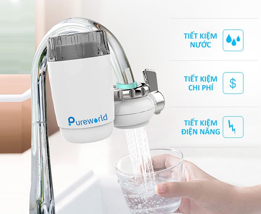 Đầu lọc tại vòi Pure World Model C1 phiên bản 1 lõi lọc xứ lọc 6 cấp hàng nhập khẩu