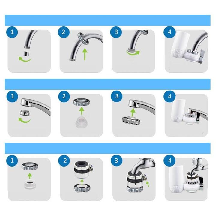 Bộ sản phẩm bao gồm 1 bộ đầu vòi; 1 lõi lọc xứ; 1 kết nối vỏ vòi 22 trong; 1 kết nối vỏ vòi 22 ngoại;1 kết nối vỏ vòi 24 trong; 1 kết nối vỏ vòi 24 trong; 1 đầu kết nối vòi thường; 1 đềm cao su 22; 1 đềm cao su 24; 1 vạn tay kết nối. và 2 giấy đánh bống lõi lọc, 1 giấy hưỡng dẫn sử dụng.