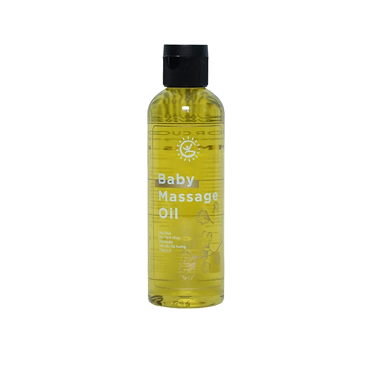 • Cho một lượng từ 2-3ml dầu mát-xa vào hai lòng bàn tay xoa đều lên cơ thể cho bé. Lượng dầu sử dụng vừa đủ cho một cơ thể bé trung bình khoảng 3-5ml (có thể tắm lại bằng nước).