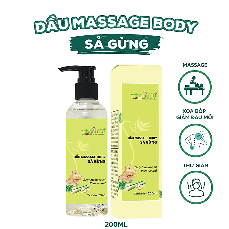 Dầu massage body Sả Gừng của thương hiệu Tinh Dầu 100 vừa là dầu massage body, chân tay vừa là dầu massage bụng, vừa là dầu xoa bóp giảm vai gáy vì sử dụng tinh dầu có tính nóng là làm ấm cơ thể, khả năng giảm đau tự nhiên.