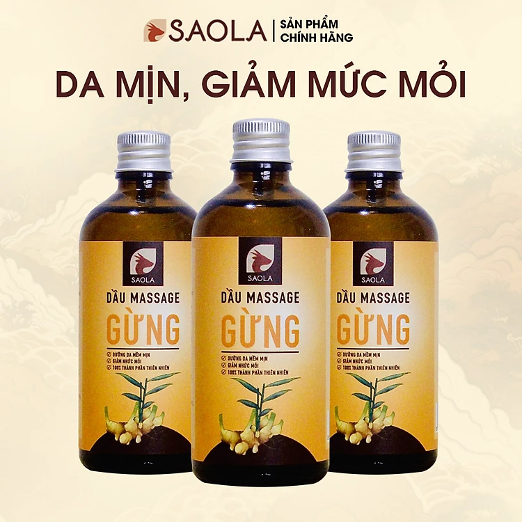 Dầu Massage Body Saola, Gừng Huế, Làm Ấm Cơ Thể, Giảm Đau Xương Khớp, Mỡ Bụng, Tự Nhiên,100ml