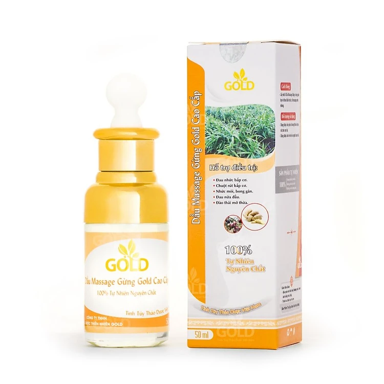 - Dầu Massage Gừng Gold Cao Cấp (50 ml) có thành phần chiết xuất 100% từ tự nhiên bao gồm: tinh dầu gừng, tinh dầu bạc hà và dầu ô-liu, mang đến các công dụng cho sức khỏe: