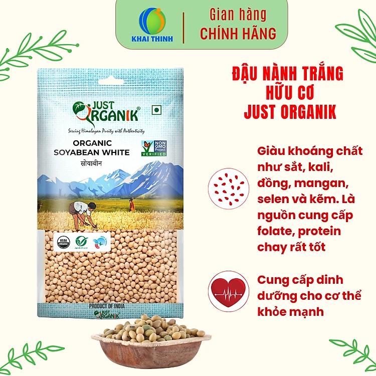 Đậu Nành Đậu Tương Hữu Cơ Không Biến Đổi Gen Làm Sữa Dinh Dưỡng Cho Bé Just Organik Nhập Khẩu Ấn Độ 500g