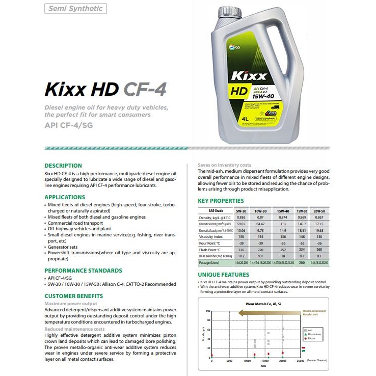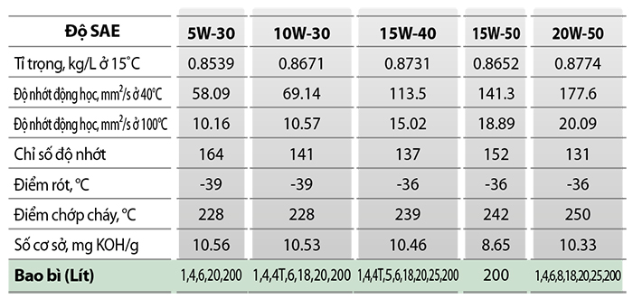 Dầu cao cấp cho động cơ sử dụng nhiên liệu diesel, được pha chế trên công nghệ dầu gốc bán tổng hợp, được khuyên dùng cho những dòng động cơ sử dụng nhớt theo tiêu chuẩn API CF-4.