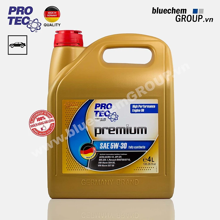 Dầu nhớt bluechem Tổng hợp toàn phần cao cấp PRO-TEC Premium 5W-30 Fully-Synthetic ACEA A5/B5-12