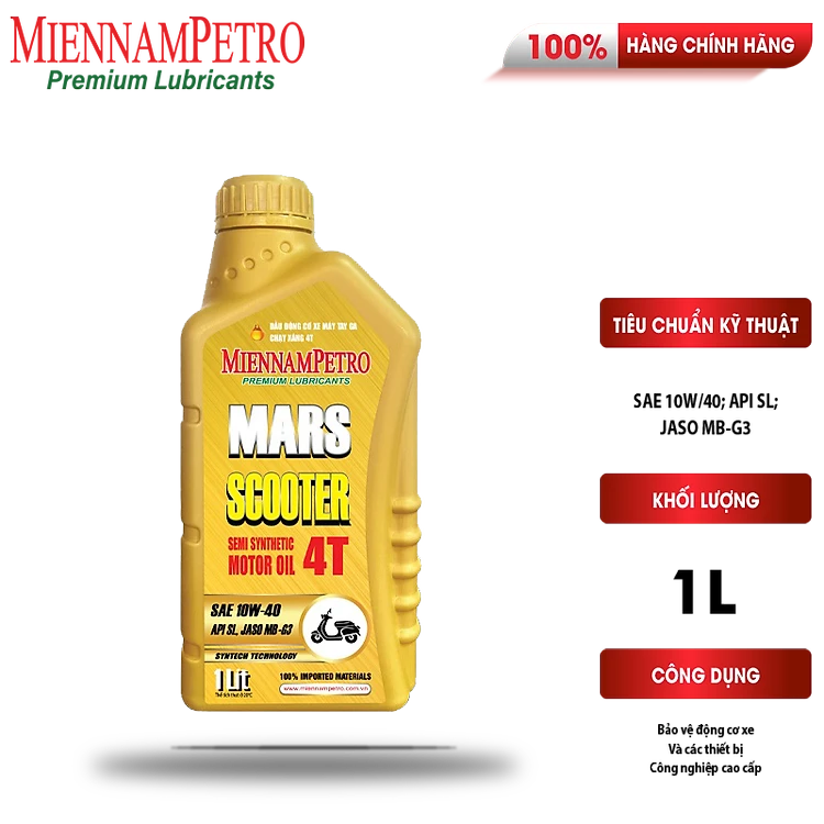 Dầu Nhớt Mars Scooter 4T 10W-40 API SL JASO MB 1L Bảo Vệ Liên Tục Động Cơ Xe Máy Tay Ga 4 Thì