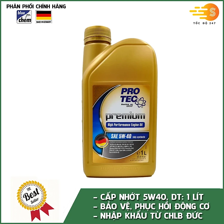 Dầu nhớt tổng hợp động cơ cho xe tay ga Pro-tec Premium Bluechem 5W40 PT-5W40-1L 1lít - Phù hợp cho xe chạy xa, chạy phượt, tăng khả năng đầm xe, mát máy
