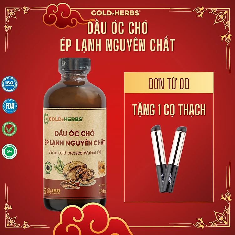 Dầu óc chó ép lạnh nguyên chất GoldzHerbs - Chai 120ml/ 250ml