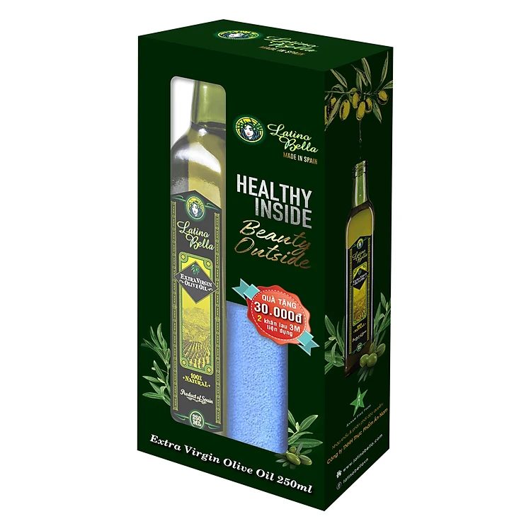- Dầu Oliu Extra Virgin Latino Bella (250ml) với thành phần là 100% dầu tinh chất từ lần ép đầu tiên của trái ô liu, sản phẩm đạt tiêu chuẩn khắt khe là sự lựa chọn tối ưu cho giá trị dinh dưỡng và khẩu vị của những khách hàng khó tính nhất.