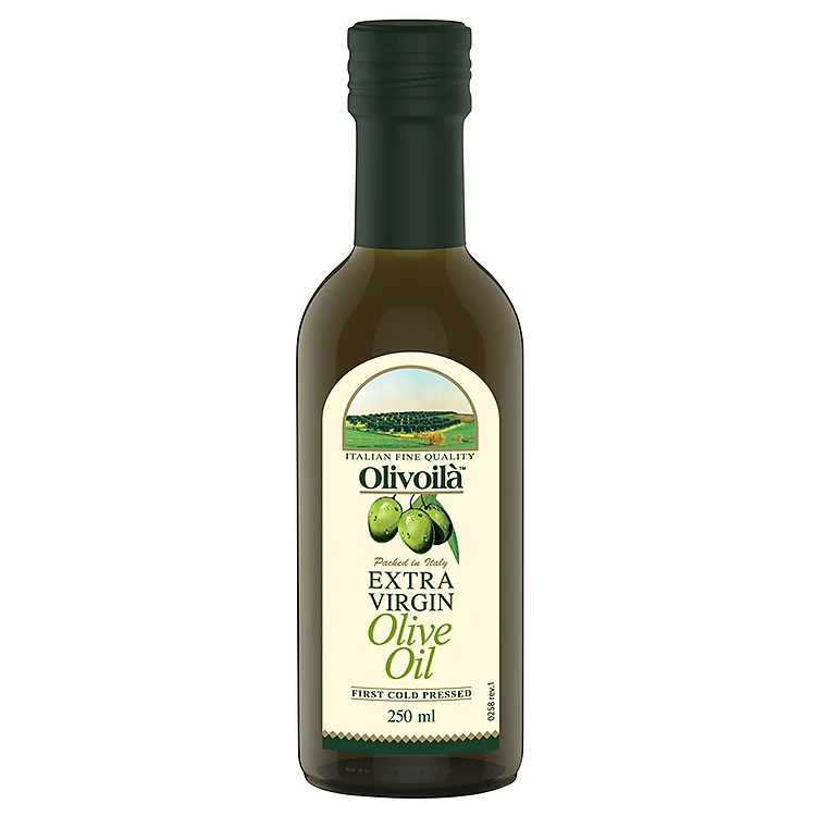 Dầu Ôliu Olivoilà được chiết xuất từ 100% dầu Ôliu nguyên chất giàu dinh dưỡng thường được trồng ở phía nam nước Ý. Sản phẩm là dầu Ôliu nguyên chất sử dụng công nghệ ép lạnh, chọn lọc những trái Ôliu tươi ngon nhất và đóng gói trong chai nhuộm màu tối để bảo vệ dầu tránh khỏi ánh sáng mặt trời.