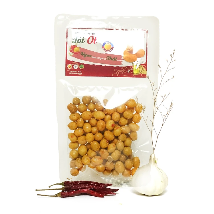 Đậu phộng (60%), bột mì, bột bắp, bột biến tính, đường, muối, tỏi (1%), ớt (1%), chất điều vị (E621), dầu thực vật.