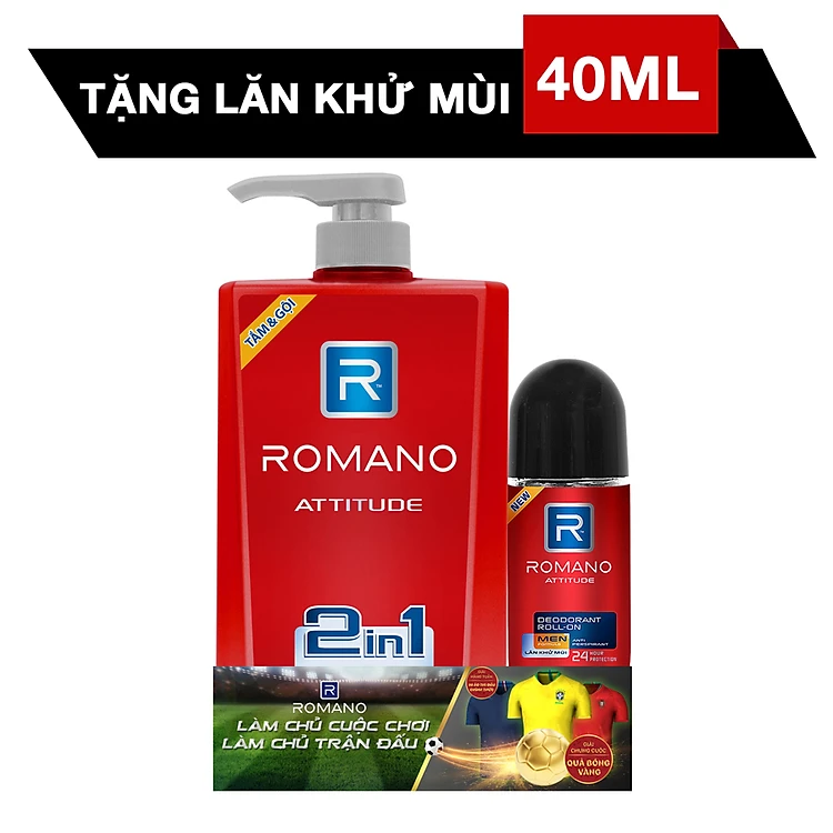 Dầu Tắm Gội 2 Trong 1 Dành Cho Nam Romano Attitude (650g) - Tặng Lăn Khử Mùi 40ml