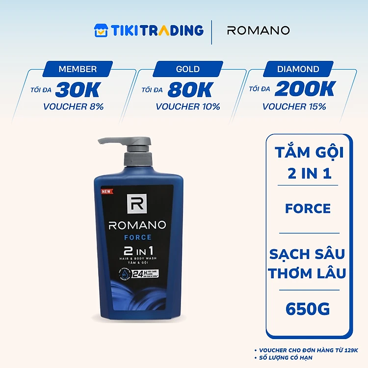 Dầu Tắm Gội 2 Trong 1 Dành Cho Nam Romano Force (650g)