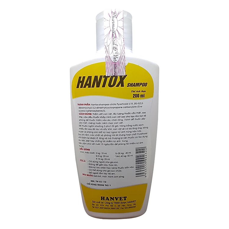 Dầu Tắm Trị Bọ Chét, Ve, Ghẻ, Rận Chó Mèo Hanvet Hantox Vàng (200ml)