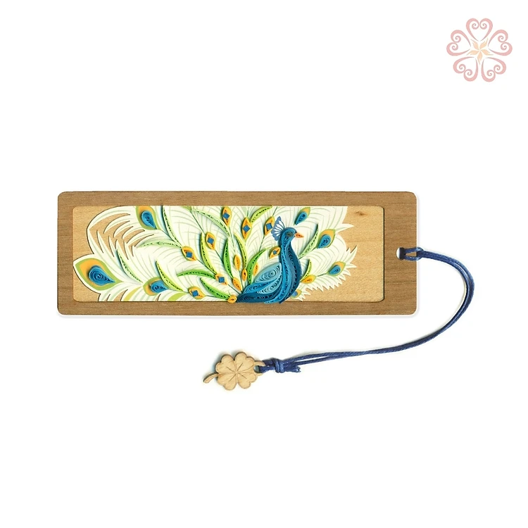 Dấu trang nghệ thuật - chú công trắng - size 13.5 x 5.3 cm