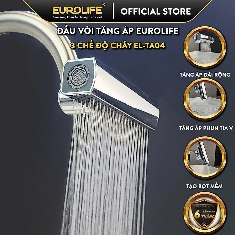 Đầu vòi tăng áp đa năng, 3 chế độ chảy ưu việt cho vòi rửa chén Eurolife EL-TA04