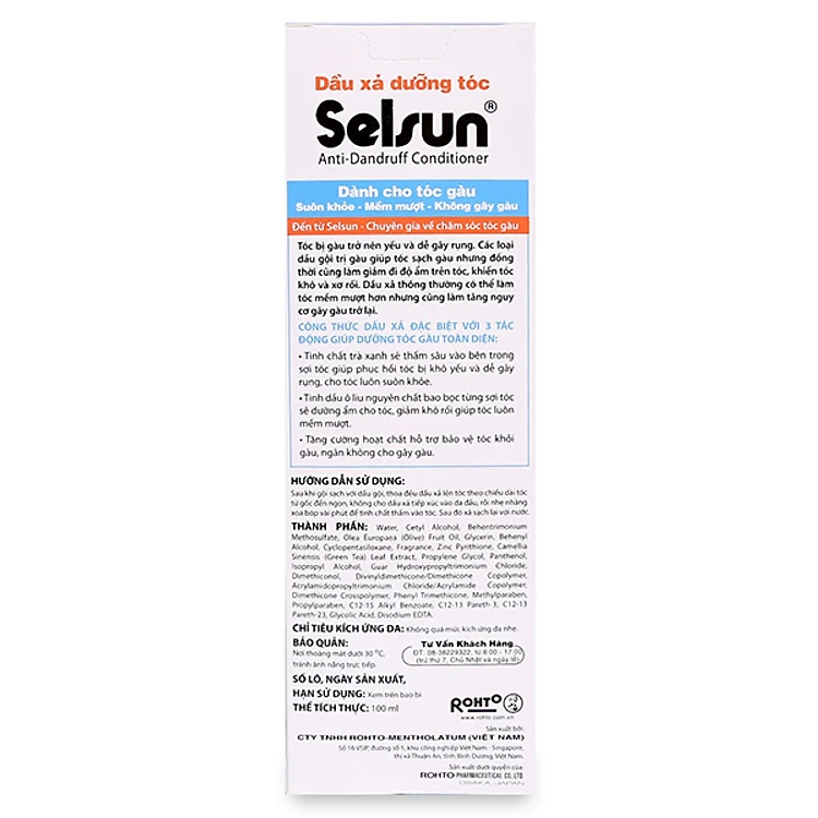 - Dầu Xả Dưỡng Tóc Selsun (100ml) với nguyên liệu tự nhiên được đặc chế với đồng thời 3 tác động giúp nuôi dưỡng mái tóc chắc khỏe, suôn mượt, không lo bị gàu.