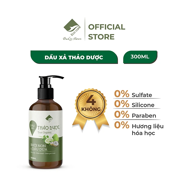 Dầu xả thảo dược Ecocare 300ml hỗ trợ làm mềm tóc, giúp tóc chắc khỏe, giảm gãy rụng