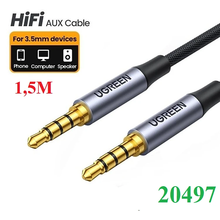 Dây AV 2 đầu giắc 3.5mm kết nối Microphone, đầu kim loại, vỏ bện vải dài 1.5m UGREEN AV183 20497 - Hàng chính hãng