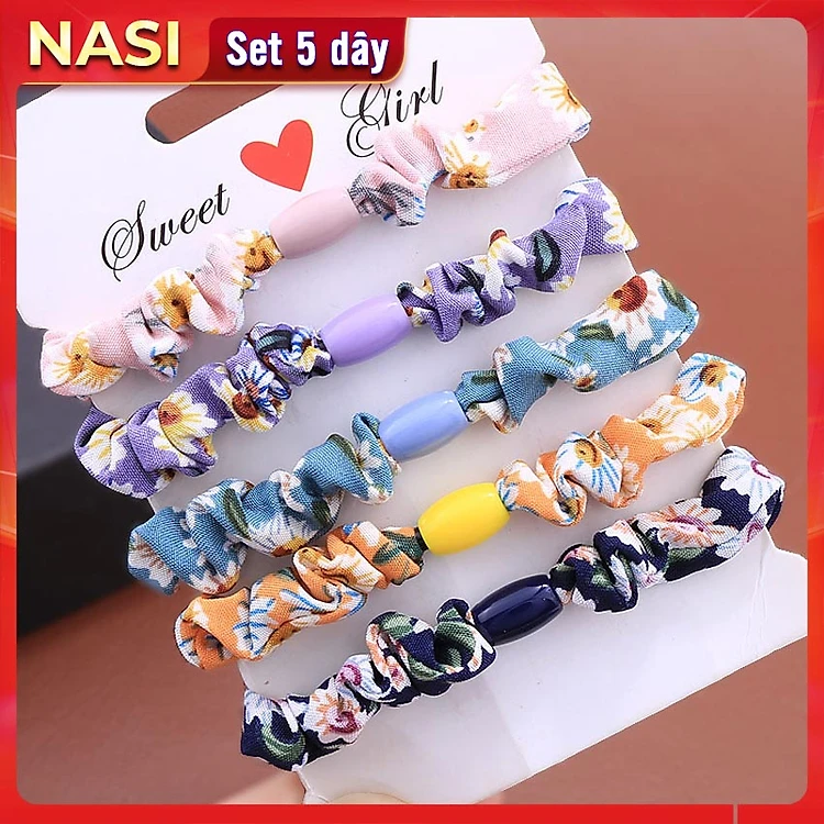 Dây buộc tóc nữ vải hoa [Set 5 dây] NASI phối màu dễ thương phong cách hàn quốc thun cột tóc nữ co giãn tốt phụ kiện tóc