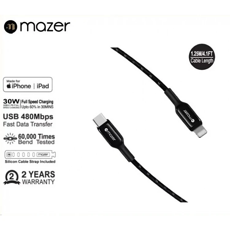 Dây Cáp Mazer Infinite.LINK Pro 3 Mfi certified 1.25m - Hàng chính hãng
