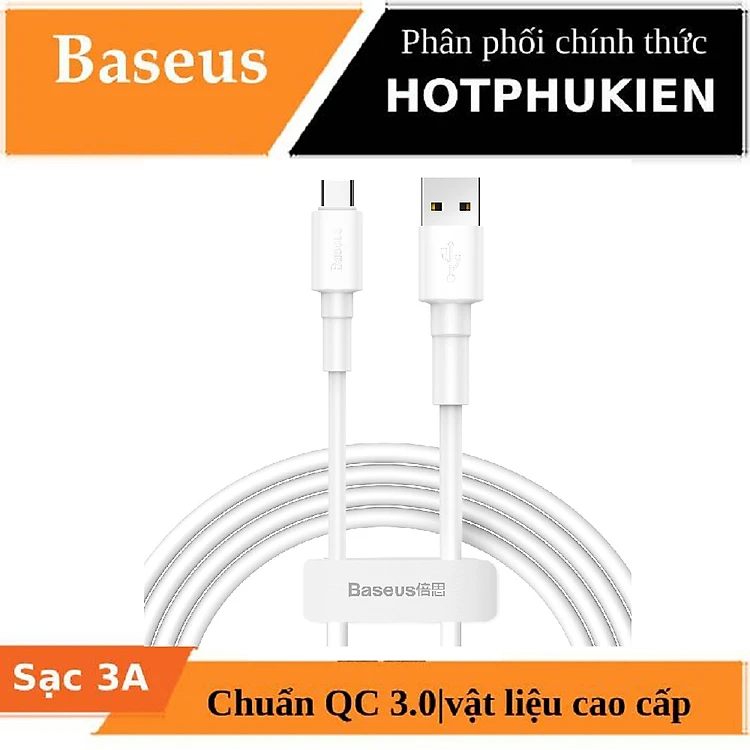 Dây cáp sạc nhanh 3A chuẩn QC 3.0 USB-A to Type-C hiệu Baseus Mini White cho điện thoại / máy tính bảng / iPad Type C trang bị chip sạc thông minh, tốc độ truyền tải dữ liệu tốc độ cao 480Mbps - hàng nhập khẩu