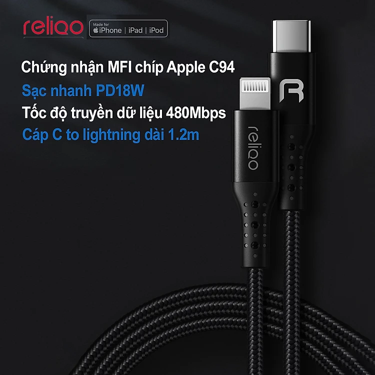 - Cáp RELIQO RCA-705 sử dụng chip Apple C94 gốc Với đầu cuối Apple C 94 nguyên bản, đồng bộ nâng cấp 105, tương thích cao với tất cả các Dòng iPhone