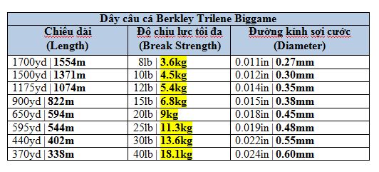 Dây câu cá Berkley Trilene Biggame