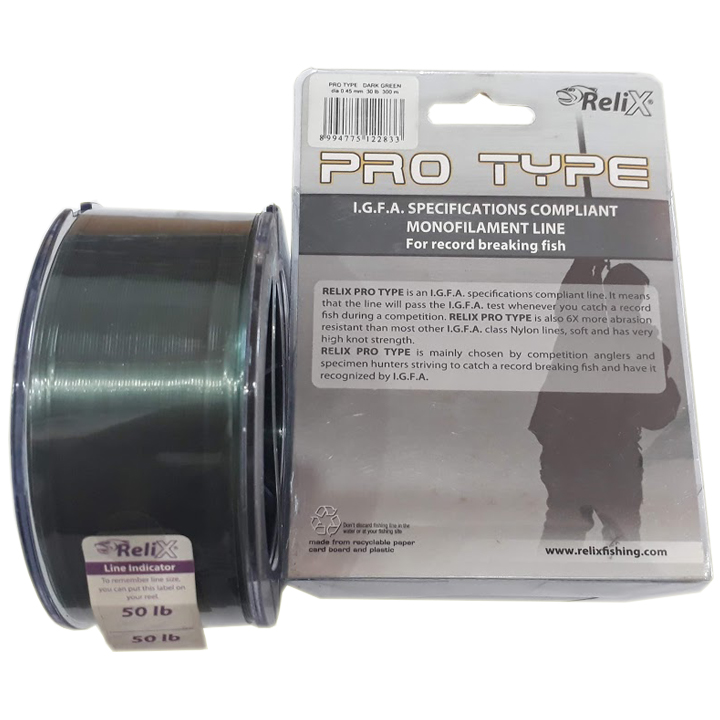 Dòng dây Pro Type của Relix đặt tiêu chuẩn của tổ chức I.G.F.A (tổ chức gọi là Hiệp Hội Câu Cá Thể Thao Quốc Tế -International Game Fish Association viết tắt là I.G.F.A).