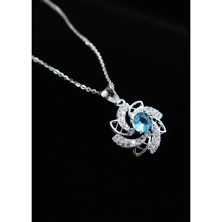 Dây chuyền Bạc Thật mặt hoa xoáy đính Pha Lê - Vòng cổ bạc nữ [TS-DC-A22]