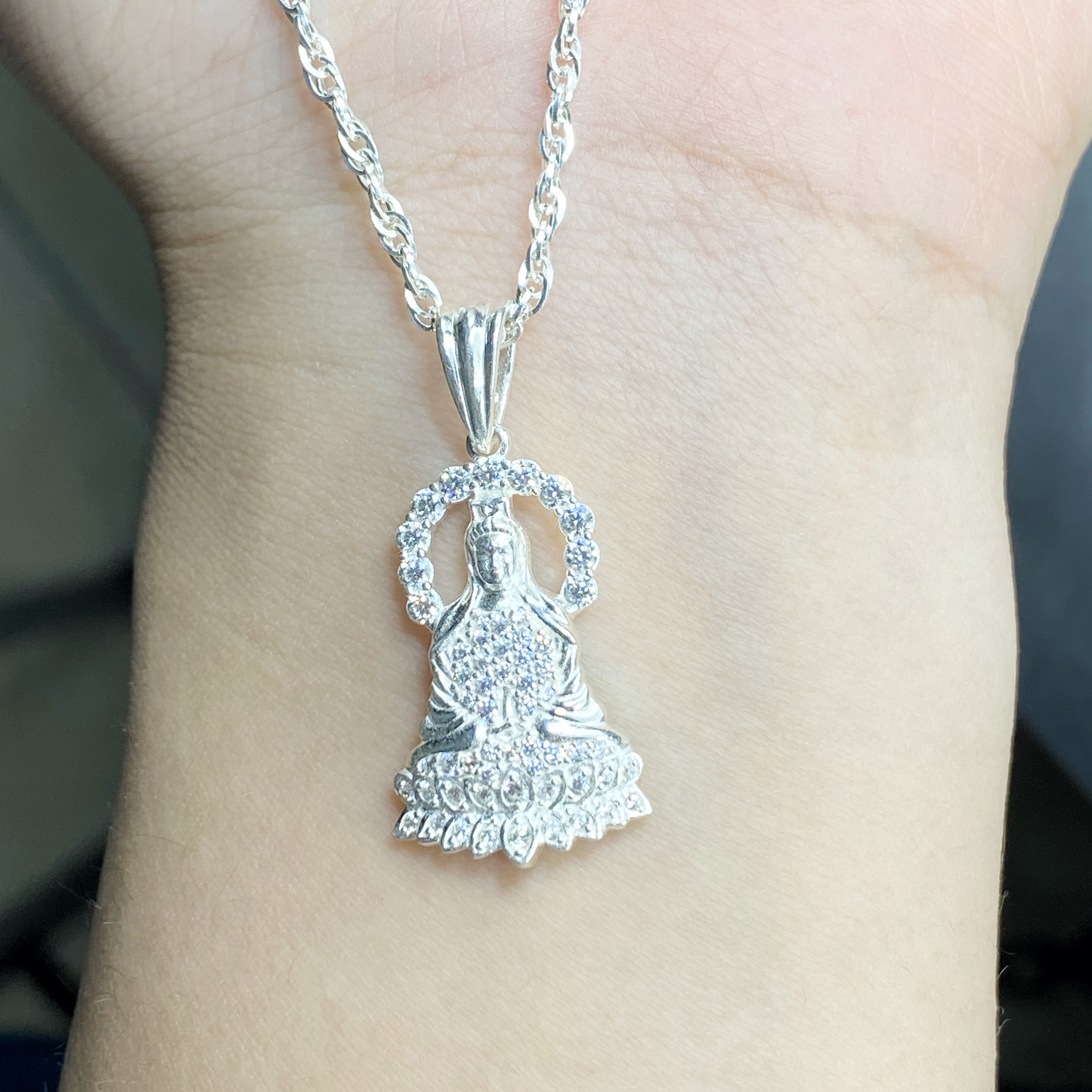 ️ Chất liệu: Dây xoắn kép bạc ta nguyên chất S99 không xi mạ cực bền chắc, chiều dài dây 50cm móc khóa tròn.( có dây 55cm khách chat với shop để đặt riêng nhé ). Mặt Quan Thế Âm Bồ Tát bạc 925 đính đá nhân tạo cao cấp sáng bền đẹp. Chiều dài dây 50 cm,chiều dài cả móc 4,5cm. Được thiết kế vô cùng tinh tế, mặt đá CZ cao cấp chống xước sáng lung linh như kim cương nhân tạo.