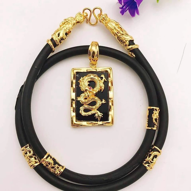 Dây Chuyền Mặt Rồng Vàng Nền Đen Mạ Vàng + TẶNG LÁ BỒ ĐỀ MAY MẮN TÀI LỘC ĐỂ VÍ ĐIỆN THOẠI