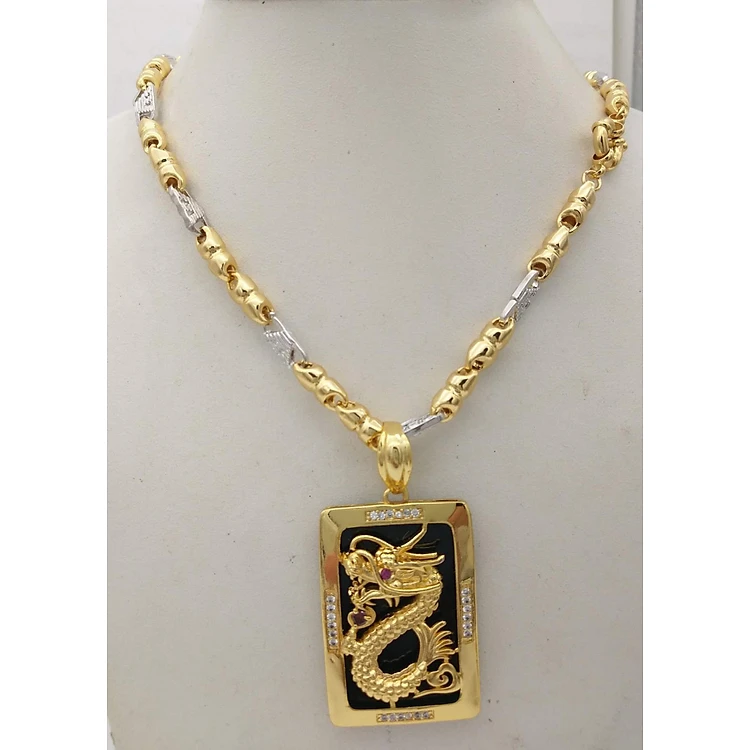 Dây chuyền nam 2 màu mặt chữ nhật khảm Rồng mạ Vàng 24k MD36