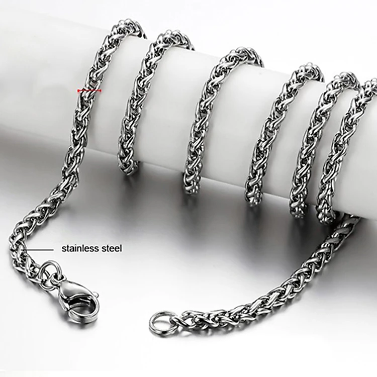 Dây chuyền nam inox thời trang kiểu bông dừa xoắn phukienpt kích cỡ 3mm màu trắng thép không gỉ PTDCNA16