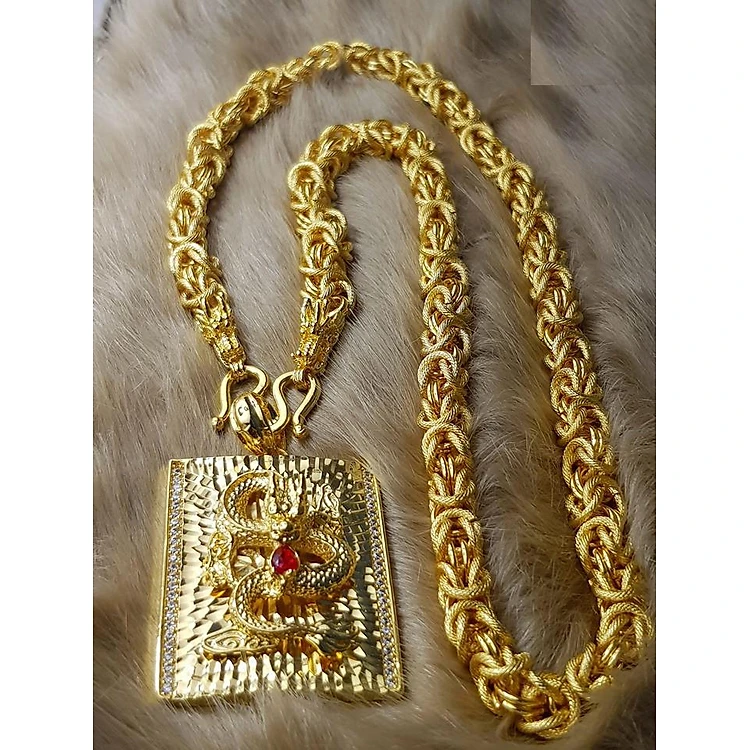 Dây chuyền nam rồng cuộn mặt chữ nhật kim long mạ vàng MD9