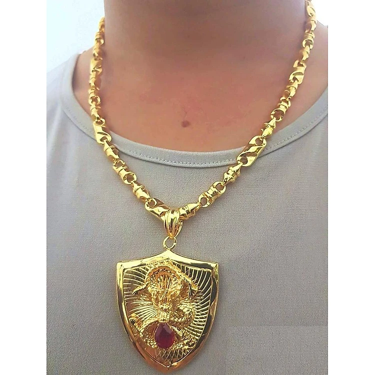 Dây Chuyền Nam Tính Mạ Vàng Mặt Khiên Khảm Rồng Cực Chất + TẶNG LÁ BỒ ĐỀ MAY MẮN TÀI LỘC ĐỂ VÍ ĐIỆN THOẠI
