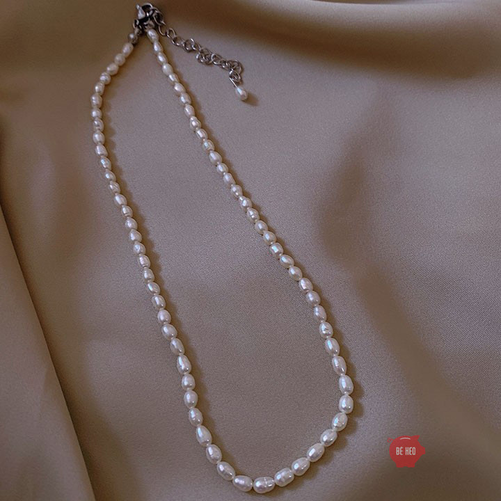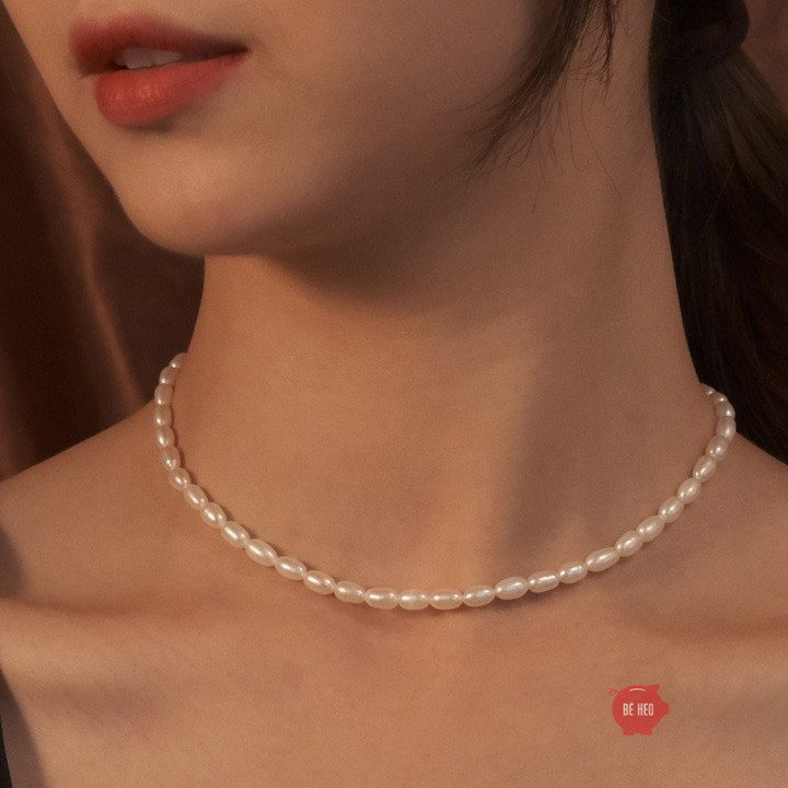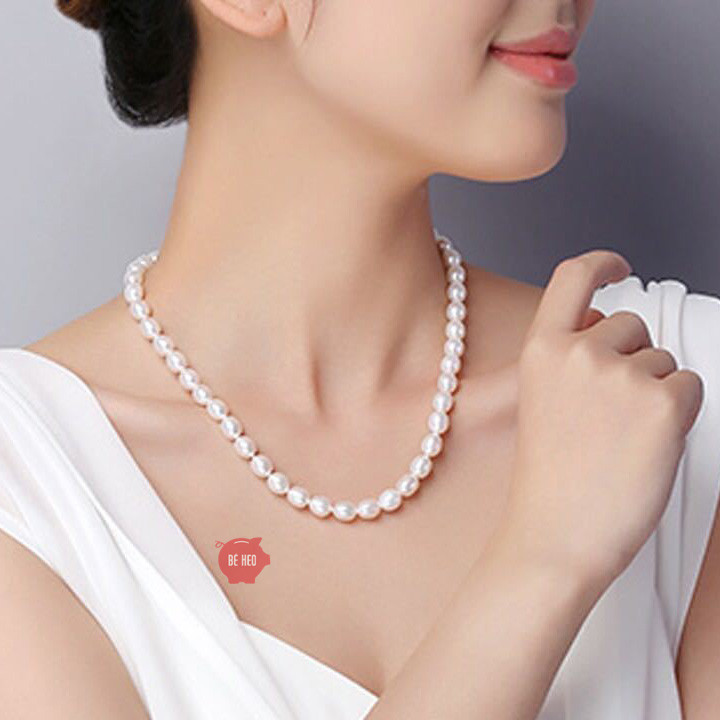 Dây chuyền ngọc trai nuôi nước ngọt oval - Dây chuyền bạc nữ - Tặng hộp Tặng Quà 0đ Trang sức Bé Heo BHDC248