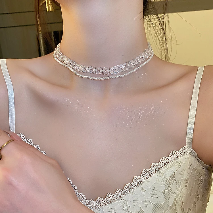 Dây chuyền vòng cổ hạt cườm trong suốt lấp lánh blink blink phong cách Hàn Quốc sang chảnh ấn tượng phong cách hot girl