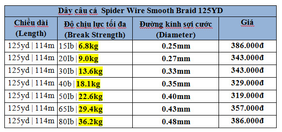 Dây cước câu cá bện Spider Wire Smooth Braid 125YD