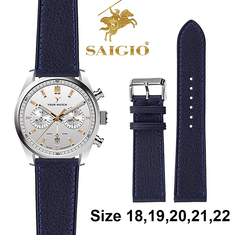 Dây Da Đồng Hồ Cổ Điển, 100% Da Bò Thật, Kiểu Dáng Phẳng Mỏng, Mặt Lót Chống Thấm Mồ Hôi, Tích Hợp Lớp Gia Cố Chống Giãn Đặc Biệt, Phụ Kiện Khóa và Chốt Bằng Thép Không Gỉ 316L - Hàng Chính Hãng SAIGIO
