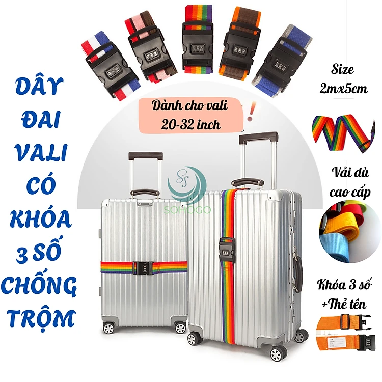 Dây đai vali hành lý chống bung 2m có khóa 3 số- Dây buộc vali du lịch co giãn, có khóa- Dây đai cố định vali cao cấp- Dây đai vali mã số an toàn