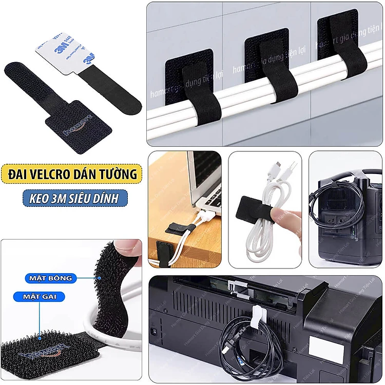 Dây Đai Velcro Keo 3M Dán Tường Đa Năng Cuốn Dây Cáp Sạc Tai Nghe Treo Dây Điện Chống Rối