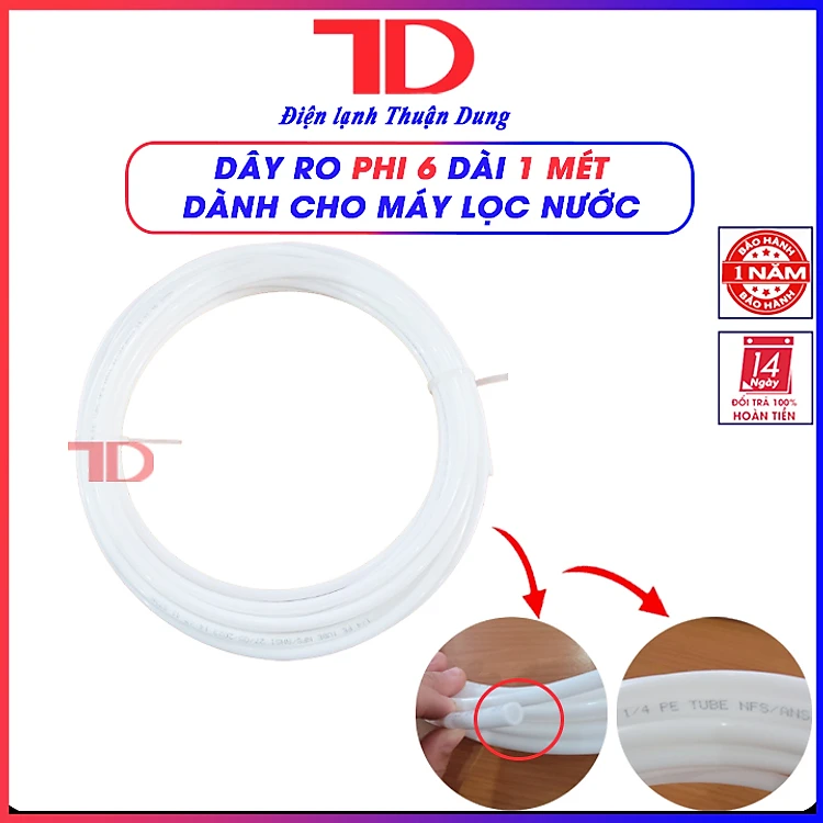 Dây dẫn nước, dây RO dành cho máy lọc nước, Phi 6, dài 1 mét, Điện lạnh Thuận Dung