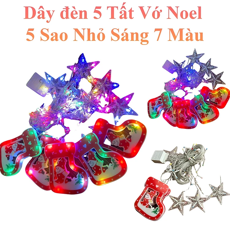 Dây Đèn 5 Tất Vớ Noel + 5 Sao Nhỏ Sáng 7 Màu