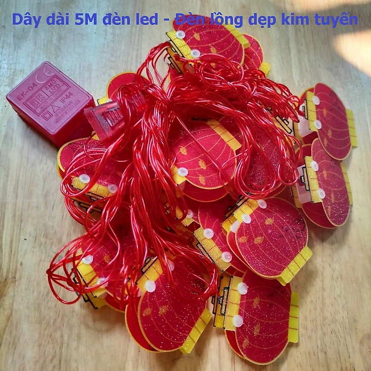 Dây Đèn LED Dài 5M 16-18 Đèn Lồng Đỏ, Trang Trí Lễ Tết Năm Mới/ Dây Lồng Đèn Trang Trí , Nguồn 220v kiểu tròn - dài, có box và đầu nối