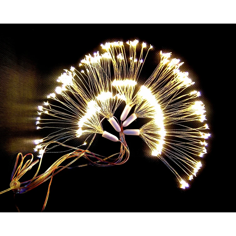 Dây gồm 5 ngọn ( mỗi ngọn gồm 100 bóng led tạo hiệu ứng pháo hoa rực rỡ màu vàng ấm)